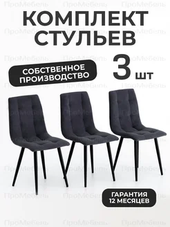Стулья для кухни 3 шт со спинкой мягкие велюровые