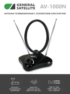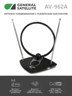 Антенна телевизионная комнатная с усилителем МВ+ДМВ AV-962A