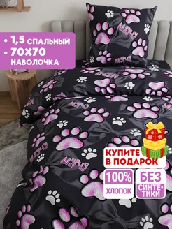 Постельное белье 1.5 спальное 70х70 хлопок Таба котик