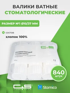 Валики ватные стоматологические №1 Ø8 37мм, 840шт