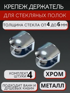 Крепеж держатель для стеклянных полок толщиной 4-6 мм