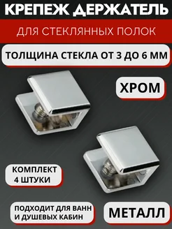 Крепеж держатель для стеклянных полок толщиной 4-8 мм