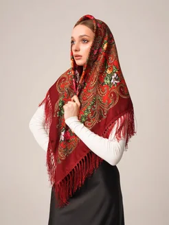 Платок на голову с бахромой и узором