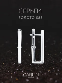 Серьги белое золото 585 прямоугольные конго