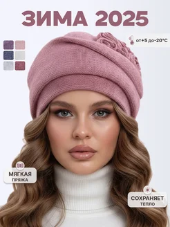 Шапка женская зимняя модная 2026 вязаная коричневая