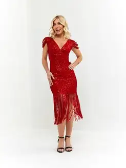 Красное платье с пайетками и бахромой гэтсби