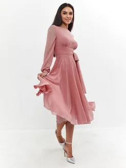 Платье коктейльное шифоновое миди