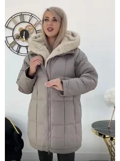 Куртка с капюшоном двусторонняя зимняя оверсайз