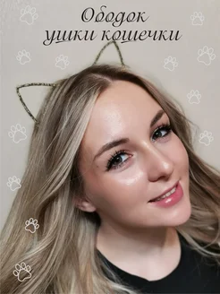 Ободок с ушками кошки металлический с тканью