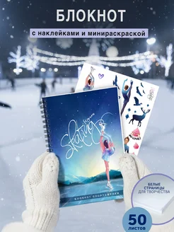 Скетчбук с наклейками фигурное катание подарок фигуристке
