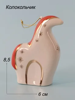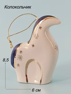 Фарфоровая елочная игрушка-колокольчик лошадка звездочка