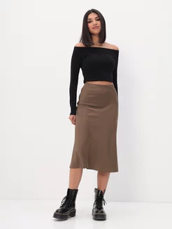 Юбка миди атласная из шелка