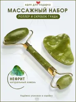 Массажер для лица Нефритовый роллер Скребок гуаша подарок