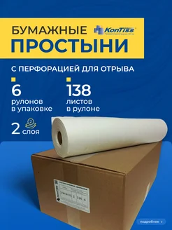 Простыни бумажные одноразовые 6 рулона с втулкой