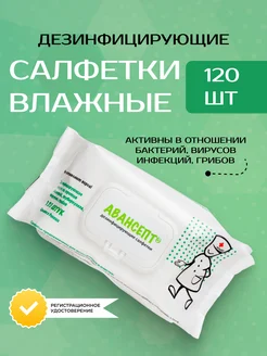 Салфетки влажные антибактериальные с клапаном, 120 шт