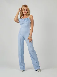 Комбинезон брючный праздничный с перьями