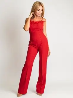Комбинезон брючный вечерний с перьями