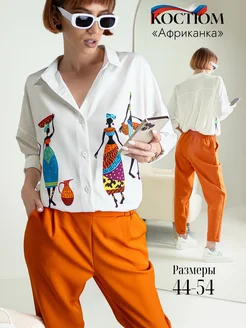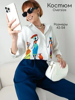 Костюм брючный летний с принтом оверсайз для улицы и пляжа