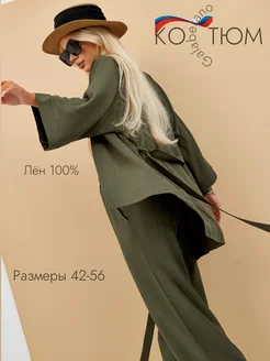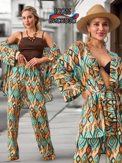 Костюм летний с брюками и кимоно из льна для пляжа и улицы