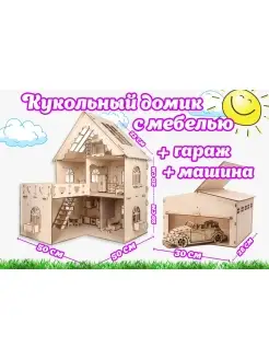 Большой кукольный домик с мебелью, гаражом и машинкой