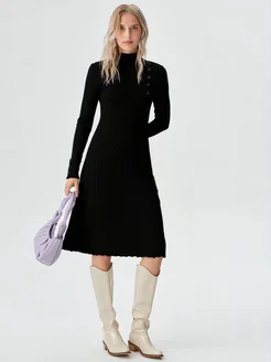 Платье миди плиссированное трикотажное черное Италия
