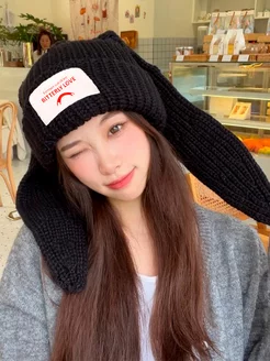 Вязаная шапка Bitterly Love корейская с ушками y2k зима