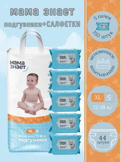 Микс подгузники мама знает XL (5) 12-18 кг 44 шт.+ салфетки