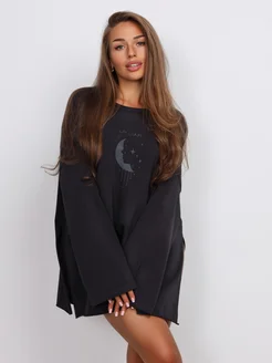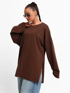 Лонгслив оверсайз базовый однотонный с разрезами новогодний