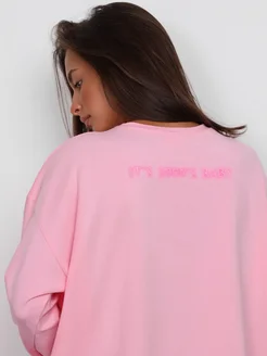 Лонгслив оверсайз базовый с принтом розовый