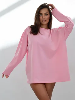 Лонгслив оверсайз базовый однотонный розовый с разрезами
