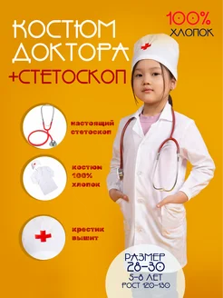 Костюм доктора со стетоскопом и халат с колпачаком 28-30
