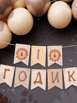 Гирлянда растяжка 1 годик флажки Радуга бохо