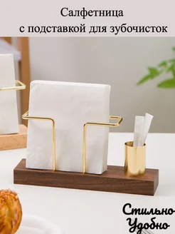 Салфетница с подставкой для зубочисток деревянная