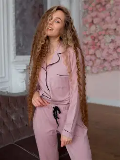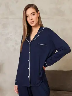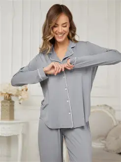 Трикотажная пижама со штанами и рубашкой оверсайз