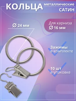 Кольца металлические с зажимами для карниза 16мм 10шт, сатин