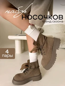 Носки высокие однотонные в рубчик набор 4 пары