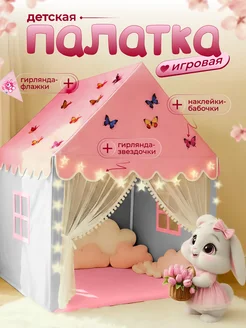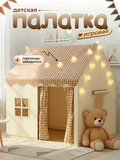 Палатка детская игровая для мальчика и девочки с гирляндой