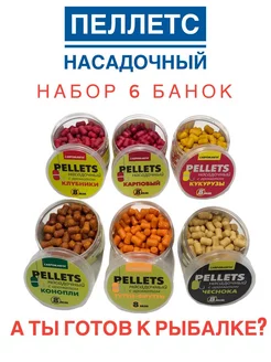 Пеллетс насадочный для рыбалки, Pellets набор 6 банок