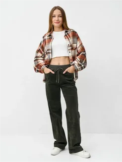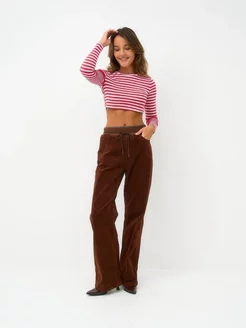 Брюки вельветовые на резинке с высокой посадкой стрейчевые