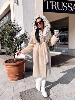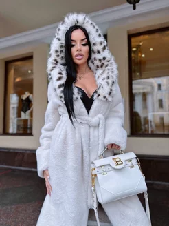 Шуба искусственная премиум с капюшоном дизайнерская