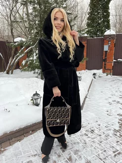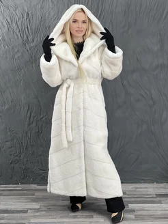 Шуба премиум женская искусственная с капюшоном 130 см