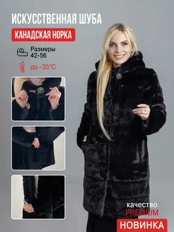 Шуба искусственная с капюшоном под норку
