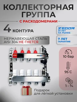 Коллектор для теплого пола на 4 выхода