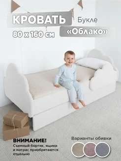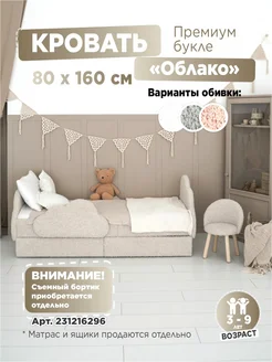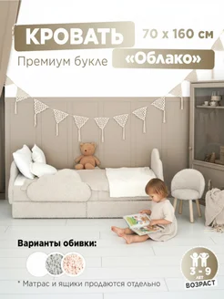 Детская кровать Облако, с бортиком премиум букле 160х70
