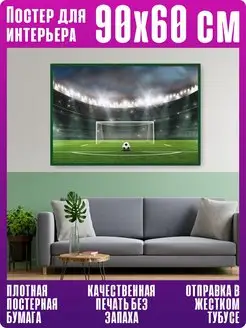 Интерьерный постер на стену футбольный мяч на поле 90*60 см