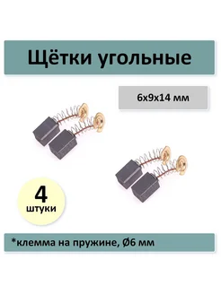 Щётки угольные 6х9х14мм, клемма Ø6 мм, 4 шт
