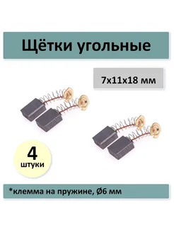 Щётки угольные 7х11х18 мм, клемма Ø6 мм, 4 шт