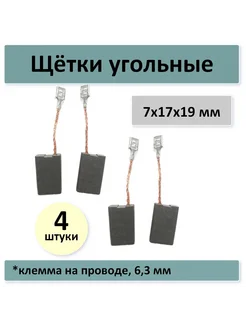 Щётки угольные 7х17х19 мм,клемма на проводе, 6,3 мм, 4 шт