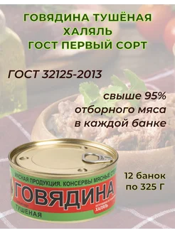 Тушенка говядина халяль ГОСТ 1 сорт 12 банок