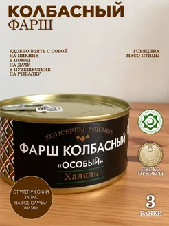 Фарш колбасный из говядины и мяса птицы 3 банки*325 гр